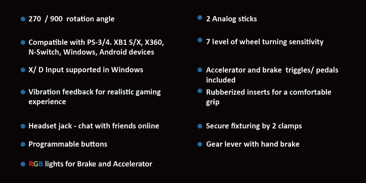7 levels of sensitivity, switching between which allows to adapt its operation for a gamer's driving style, car parameters and route.